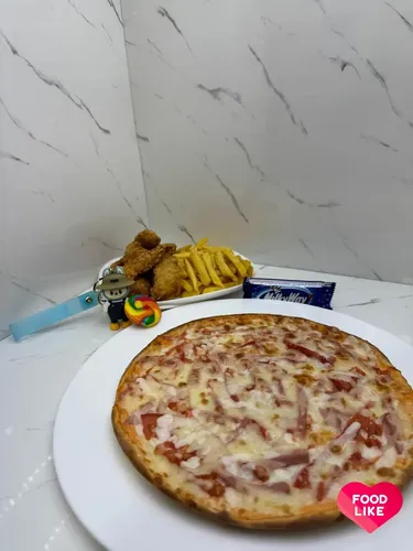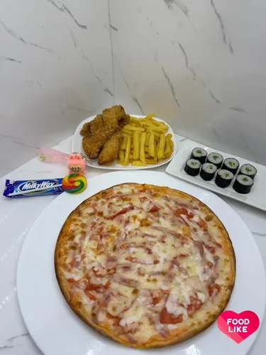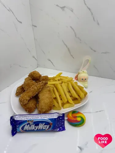 Картофель фри, наггетсы, детская пицца, детский ролл с сыром и огурцом, брелок-игрушка, леденец на палочке, MilkyWay (26 гр).