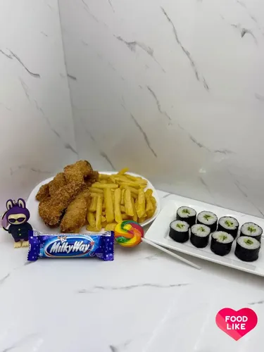 Картофель фри, детский ролл с сыром и огурцом, брелок-игрушка, леденец на палочке, MilkyWay (26 гр).