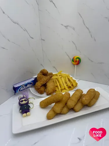 Картофель фри, наггетсы, сырные палочки, брелок-игрушка, леденец на палочке, MilkyWay (26 гр).