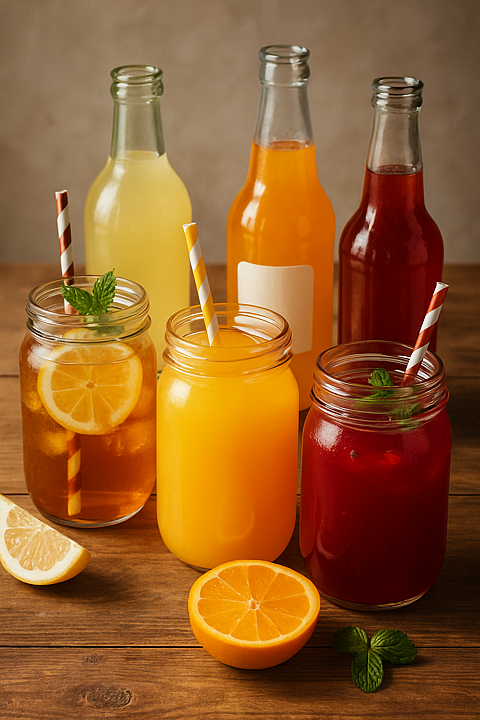Спрайт, сироп "Блю Курасао", сироп "Лайм", джус боллы, лед.