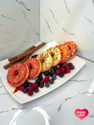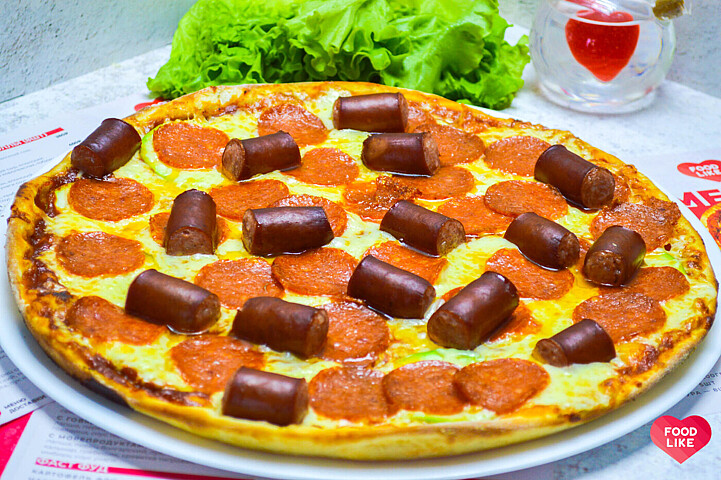 Основа, кисло-сладкий соус, колбаса - пепперони, сыр "Моцарелла".